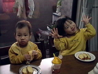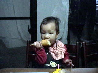 2001.1.7 なーんでも自分でやりたがる。 まさかとは思ったけど、おやつのアメリカンドックも一人で、しかも一本の8割方食べた。 |