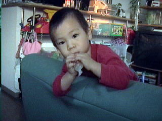 2001.10.12 袋をシャカシャカしながら追いかけてくるコワイ青希。 |