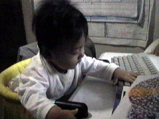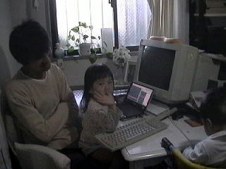 ![]() 2001.10.20 夫の仕事の邪魔をする人たち。 ![]() おやつを食べた後にはこんなありさまに。↑↑↑ここに青希もいる。 |