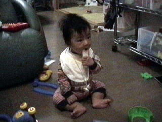 2001.10.30 せんべいはもう一人で食べられます。 ニクニクしいだけあってさすがです。 |