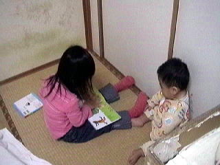 2001.12.9 かれんが青希に絵本を読んであげている。 (それほど頻繁ではない) |