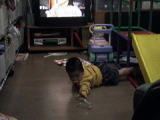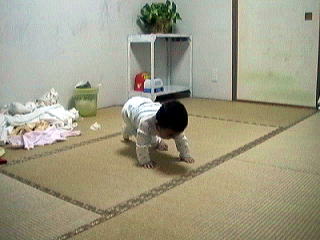 2001.12.6 冬馬の誕生日なのに青希の記録。 ハイハイするか?と思わせる形。 少々バックするようにはなっていた。 |