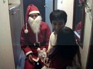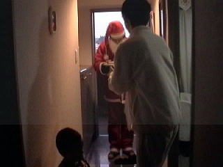 ![]() ![]() 2001.12.24 千葉コープでケーキを注文するとサンタで届けられるっていうサービスがあったのでさぞ喜ぶだろうと思いお願いした。 当日(喜ぶと思って)かれんに玄関を開けさせたらとってもビックリして怖かったらしく大泣き(>_<) せっかくかっこいいサンタさんだったのに、一緒に写真も取れず、ケーキも夫が受け取り、切ってもほとんど食べないで、親としてはなんとも寂しいクリスマスイブだった。 ドンクのチョコケーキで結構おいしかったのになぁ。 後日談ならぬ前日談で、ほんとはお友達も呼んで一緒に生協サンタを迎えようと思っていたにもかかわらず、その前に妻が風邪で寝込んだのが子供に移りお友達を断った上でのこのイブの惨状だったので、寂しさひとしお。 めったに風邪なんかひかないのにね。妻も子供も。 |
