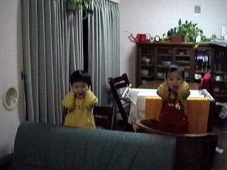 2001.2.15 さていったい何のポーズでしょう? こたえ「冬馬のいないいないばぁ」 目を隠すっていうのにまだ気づいてくれません。 |