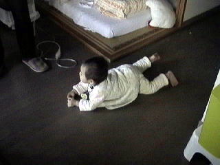 2001.2.22 座ってダンダン!の抗議から、最近はこんな見事な駄々をこねるようになった冬馬。 見るたびに「見事だね〜」って笑ってしまう。 |