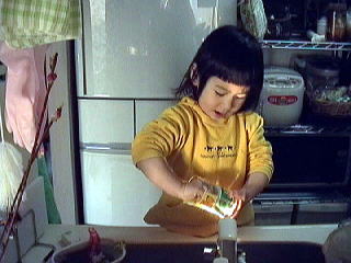 2001.2.22 ほっておいたらちゃんとスポンジでコップ洗ってた。 |