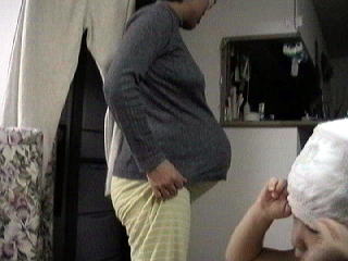 2001.2.22 記念撮影(第3子では初めてか?) 臨月突入直後の腹。 お食事中の方には失礼いたしました(^_^) ま、記念だし。今のところ最後のつもりだしぃぃ。 |