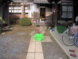 ![]() 2000.1.8 まだ妻の実家。何をしているかと 思えば籠を引きずりまわしている。 |