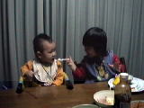 ![]() 2000.11.23 かれんが冬馬にご飯をあげている 延々カラ飯でどうかと思うも 冬馬は別にいいらしい |