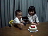 ![]() 2000.12.6 冬馬の誕生日 やっぱり蝋燭の火を触ろうとする |