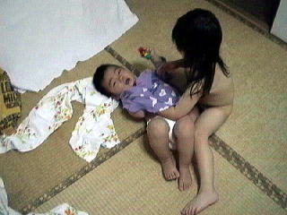 自分はパジャマも着ずにしぇーきの着替えをするかれん。