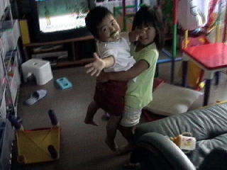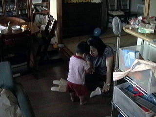 2002.8.21 かれんかあさん活躍中 しぇきもあまり嫌がってないんだよ |