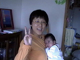 2001.4.29 たまには妻登場 髪の毛を切ったら0930(オクサマ)みたいになってしまった ゆるして |