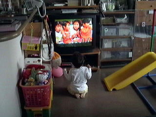 2001.5.22 相変わらず正座でテレビでノリノリ♪ |