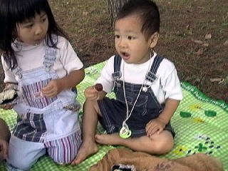 2001.9.15 お弁当を持って五井あたりの海釣り公園に。 今までそれほど食べなかったのに、ミートボールを一気食いした冬馬。 このあたりから何かが変わった。 激しい通り雨のため弁当だけ食べて早々に退散。 |