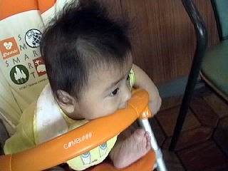 青希は歩行器に乗せると「あら、いたの」と言うような場所にいたりする。妻がいる場所を知っているらしく振り向くと後ろにいたりしてビックリすること多し。乗せては見たもののそんなに早く移動手段として活用するとは思っていなかった。