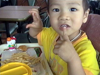2001.9.16 そのとき冬馬はポテト。 ハンバーガーもかなり食べるようになった。 今までもファストフードには行ったり買ってきたりしていたけど、 子供はポテトをつまみナゲットを食い散らかすくらいで食事になっていなかったのに、沢山食べるようになったので食事としてカウントできるようになった。 (いいか悪いかは別ですが) 夫と「楽になったよね」と話す。 |