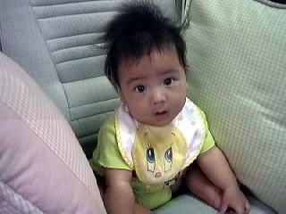 ![]() 2001.9.10 あまりにも頭ボーボーなので帽子をかぶせてみた。 3枚目の写真の輪郭がかれんの同じ時期と似てる。四角+あご。 |