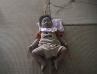 H11.7.3 あまりの寝相の悪さに腹巻をすることにした。 パジャマと合わせたらなんとピンクの寅さんに…。 この絵じゃよくわかんないかな。 首からも(おしゃぶり)下げてるんだけど。 |