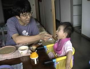 H11.7.20 テーブル用の椅子を購入。 パパの間抜けなお口に注目。 |