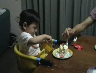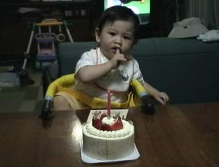 H11.8.30 お誕生日にはケーキでしょう。 でも夫は仕事でいっしょにお祝いできません でした。ので、妻妹敦子と3人で。 |