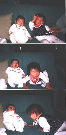 指をしゃぶりたいけど手の甲をなめている(まぐれで入る、3本とか)。