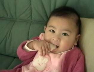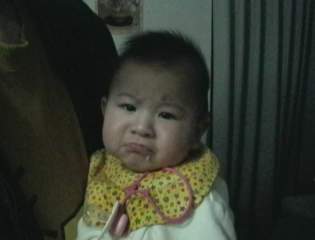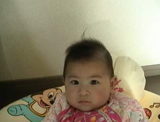 H11.2.17 スポンジケーキみたいなのを 食べさせてみた。 こんな顔するくせにばくばく食べる。 |