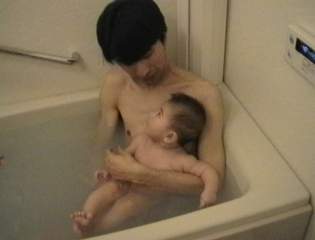 H11.2.13 みつめあう父と子の入浴ショー #かれんの足は気取っている |