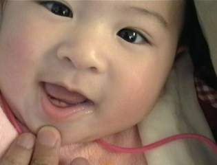 寝返りが出来るようになり、歯が生え始めた。おかゆやすりつぶした野菜など離乳食開始。