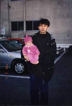H11.1.3 おくいぞめを見守る父隆志と おば古川家の三女智子 (すごい逆光) |